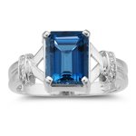This shimmering London Blue Topaz Ring highlights a sparkling emerald-cut London Blue Topaz, accented with two exuberant round Diamonds prong set in 14K White Gold. Approximate Gemstone Weight: 2.23 Carats. Approximate Diamond Weight: 0.01 Carats. The unique design adds a touch of elegance. This product is sold by JEWELS BY SABRINA.,METAL:14K Gold,ACTUAL METAL:14K White Gold,RHODIUM:Yes,WIDTH:2.3-5.3 mm,NUMBER OF DIAMONDS:2,SHAPE:Round,MINIMUM COLOR:H,MINIMUM CLARITY:SI,MINIMUM CARAT TOTAL WEIGHT:0.01,SETTING STYLE:Prong Setting,GEMSTONE:London Blue Topaz,SHAPE:Emerald,AVERAGE COLOR:Dark Blue,AVERAGE QUALITY:AA,MINIMUM CARAT TOTAL WEIGHT:2.23,GEMSTONE DIMENSIONS:9x7 mm,SETTING STYLE:Prong Setting,NUMBER OF STONES:1,COLOR:Blue- White,PRODUCT TYPE:Fashion Ring,GENDER:Womens,MATERIAL:Gemstone-White Diamond,METAL:14K Gold